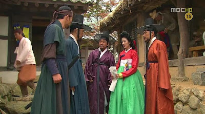 Cha Cheon Soo dan seo Yong Gi memacu kuda mereka ke suatu tempat. Geum Hong (Gisaeng teman Seol Hee) mempromosikan Gibangnya. Han Jang Bu dan Hwang Jung Bu membagikan lukisan wajah Dong Yi. Geum Hong mendatangi Han Jang Bu dan menawarkan Gibangnya, Han tidak tertarik dan pergi. Hwang Jung Gu tanya siapa nama Geum Hong. Geum Hong mengenalkan diri dan Hwang memuji, Geum Hong cantik sekali. Polisi Han berteriak pada Hwang Jung Gu dan Hwang lari mengikuti Han Jang Bu.